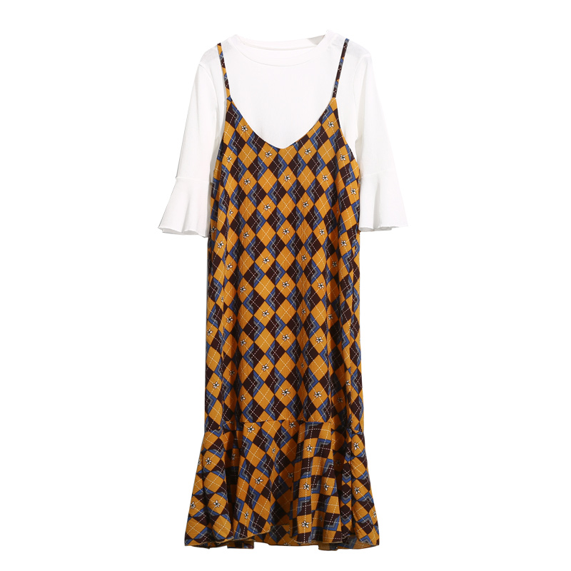 / 早春瑞麗韓版吊帶v領小碎花中長款連衣裙雪紡露背寬松百搭魚尾裙