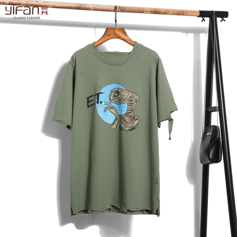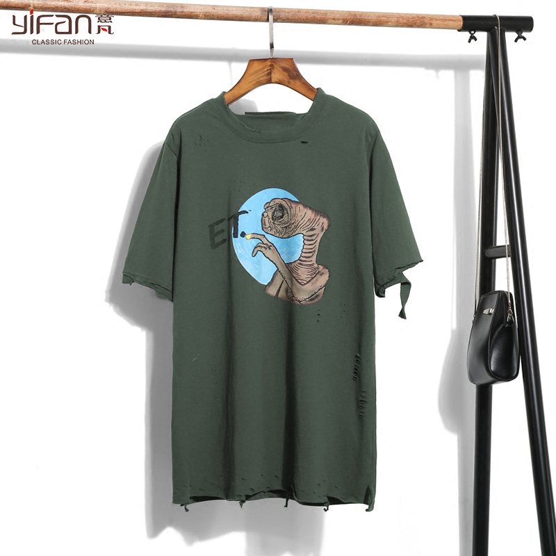 BF風韓國夏季新款短袖破洞寬松T恤女卡通印花做舊上衣學生潮