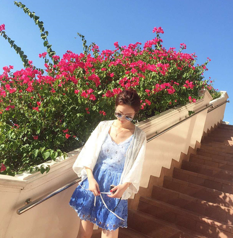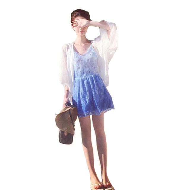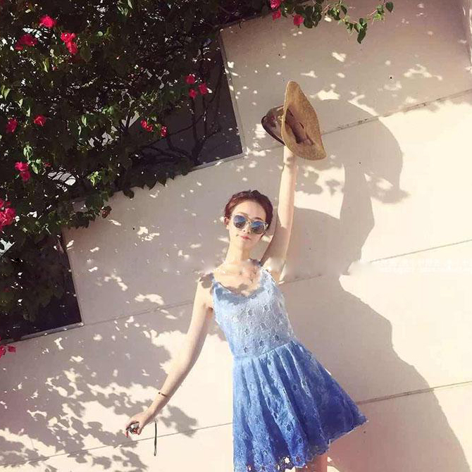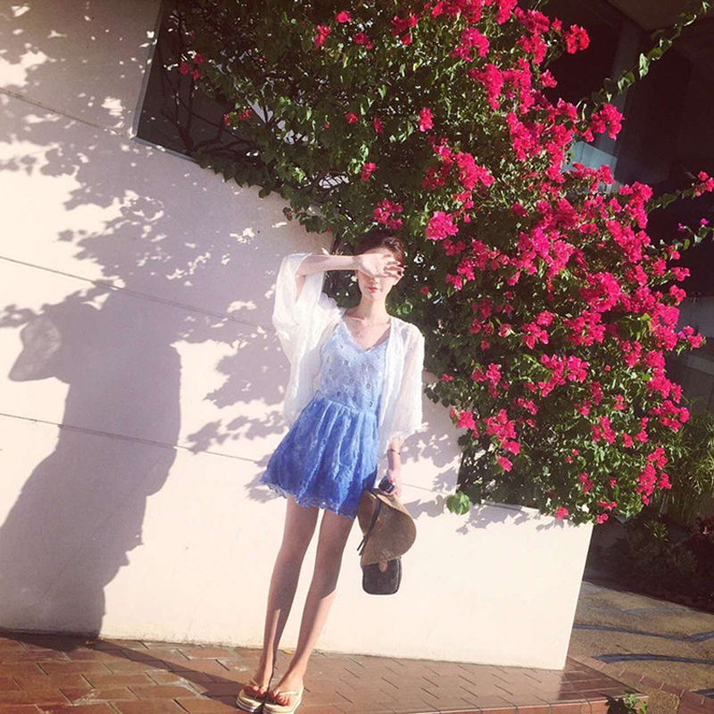水溶蕾絲連衣裙小清新甜美吊帶短裙海邊度假裙修身顯瘦沙灘裙無袖