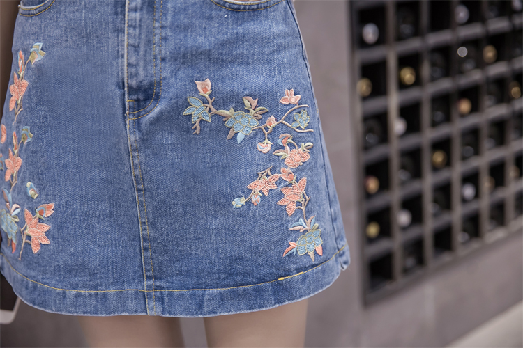 / 韓版高腰繡花牛仔裙半身裙女包臀短裙A字裙刺繡防走光褲裙半裙夏