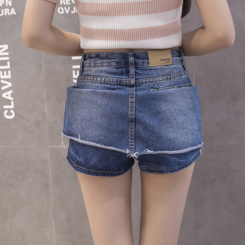 不規則破洞牛仔裙半身裙女韓版高腰A字裙包臀短裙防走光褲裙夏季