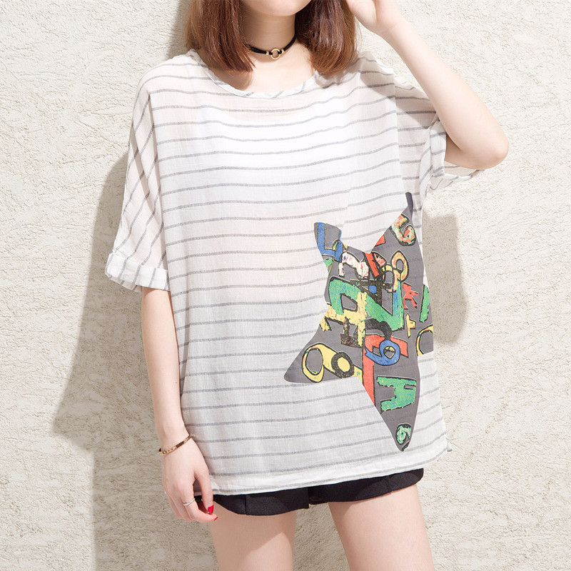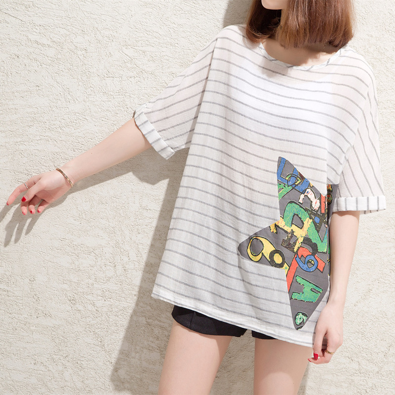 條紋白色t恤女短袖小清新心機上衣服女夏韓版體恤衫夏裝新款