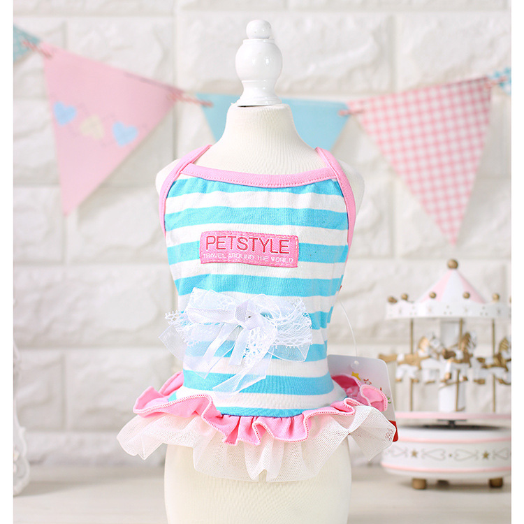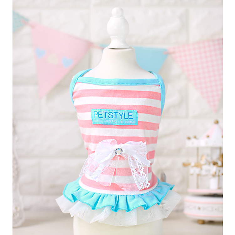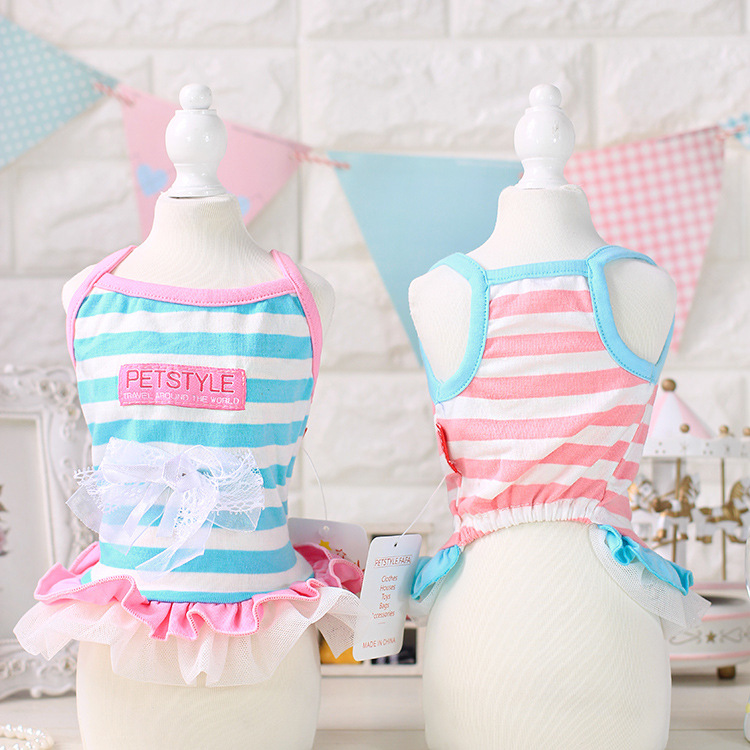 / 可愛の條紋蝴蝶結吊帶裙 寵物連衣裙狗狗裙子泰迪裙子比熊春夏裝