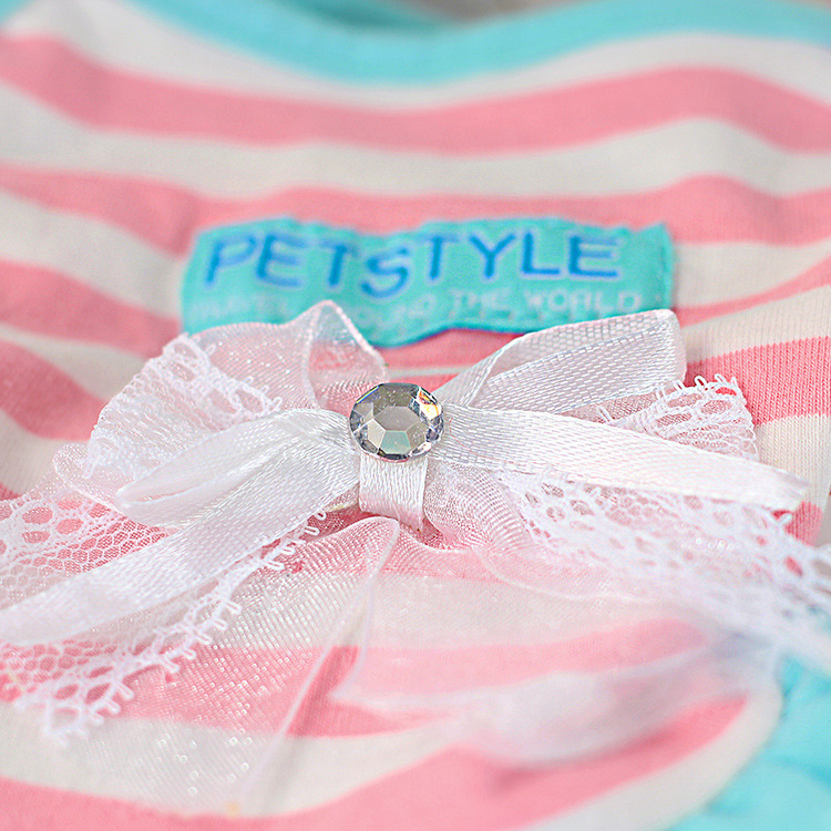 可愛の條紋蝴蝶結吊帶裙 寵物連衣裙狗狗裙子泰迪裙子比熊春夏裝
