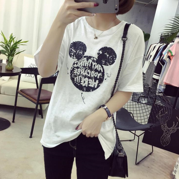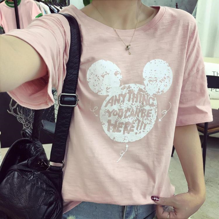/ 學生新款洗舊米奇頭寬松t恤女短袖韓版上衣竹節棉顯瘦打底衫