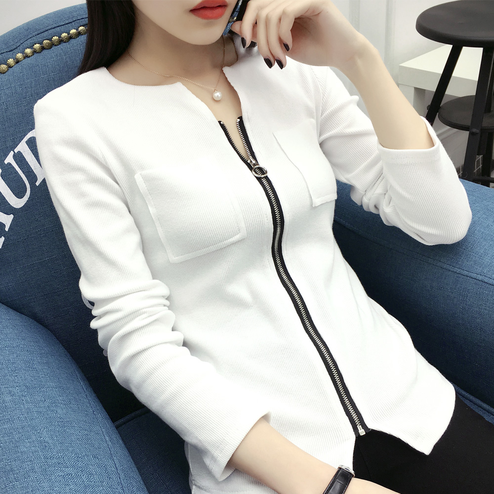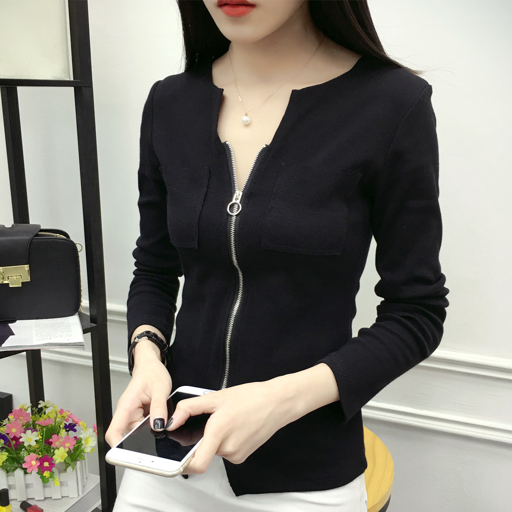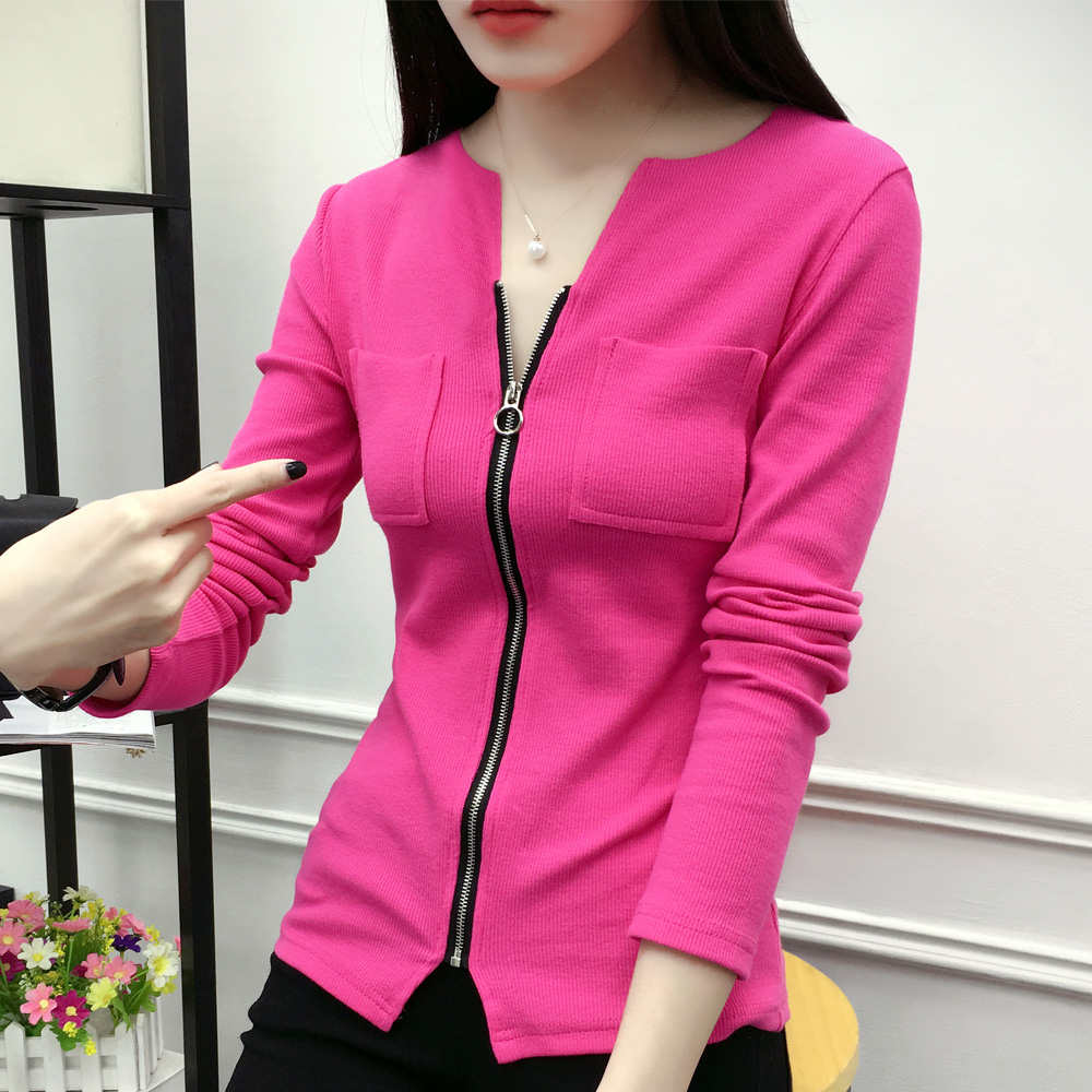 / 春秋新款女裝棉質V領長袖T恤衫大碼修身打底衫女體恤上衣