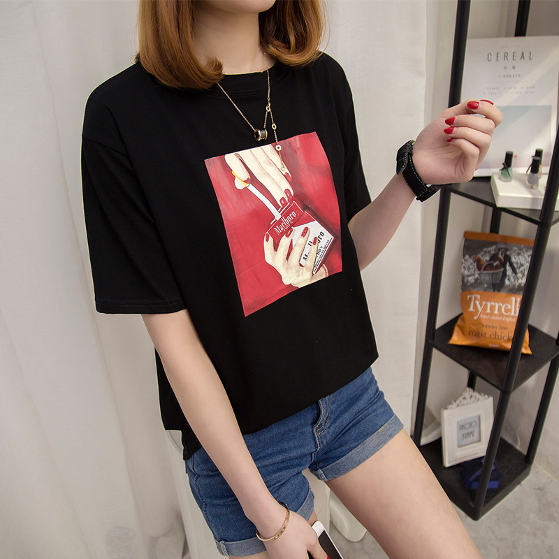 白色t恤女寬松打底體恤衫韓版休閑印花上衣短袖女夏裝新款潮