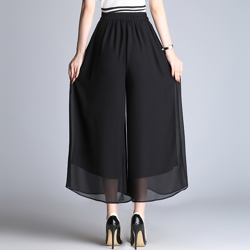 / 裙褲女夏季九分褲新款寬松雪紡闊腿褲高腰薄款大碼褲裙闊腳褲