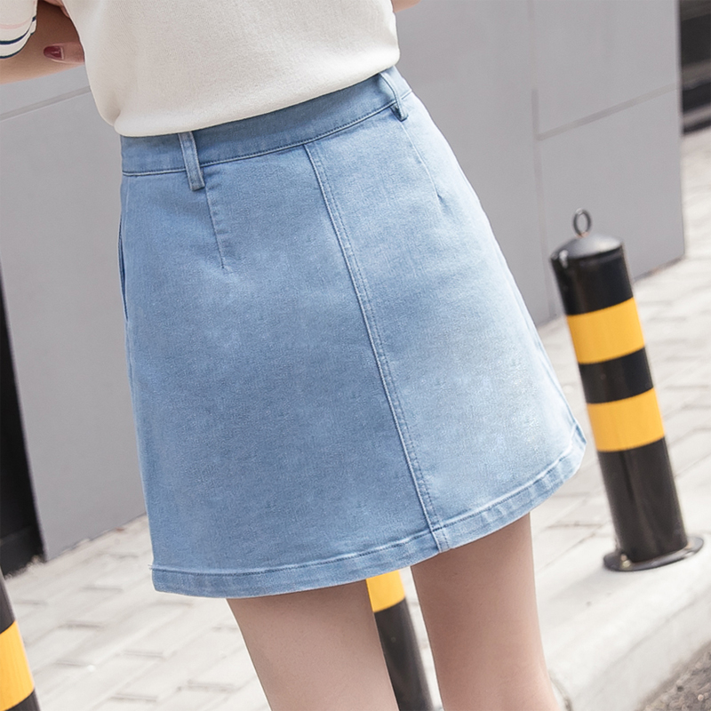 高腰牛仔裙半身裙女刺繡A字裙包臀短裙防走光褲裙大碼花朵半裙夏