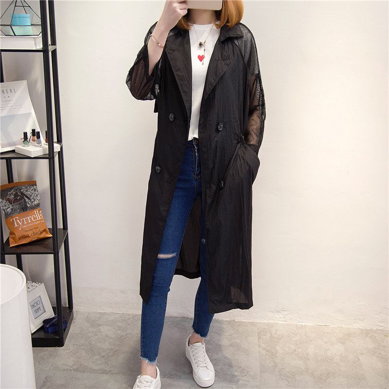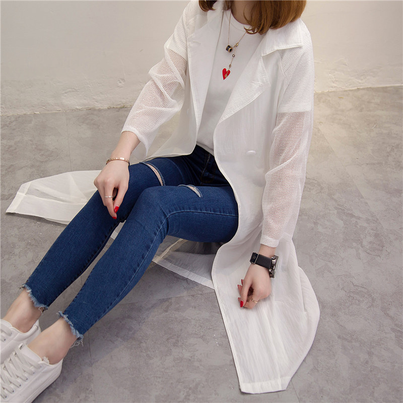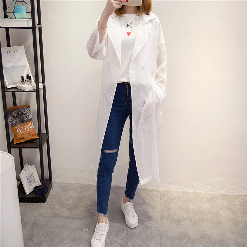 / 防曬衣女夏新款潮白色長款透視風衣外套女裝春季韓版上衣百搭