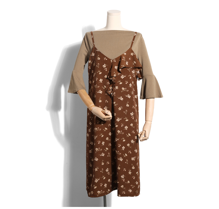 / 夏季新款碎花吊帶中長裙女裝韓版V領荷葉邊寬松腰雪紡打底連衣裙