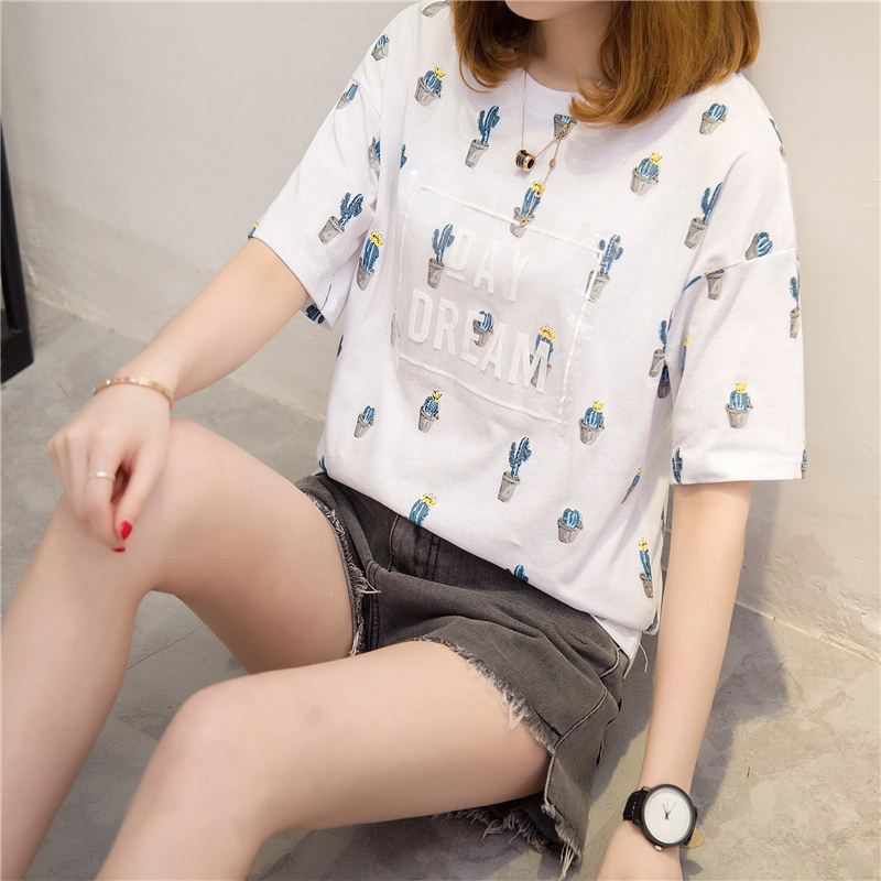 夏裝新款女裝寬松t恤女短袖打底學生仙人掌韓版百搭上衣女夏