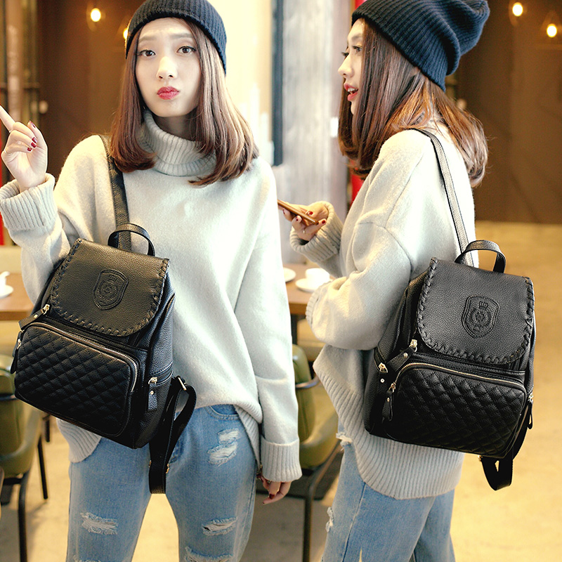 雙肩包女韓版pu時尚百搭學院風印章編織包包新款女士背包女潮