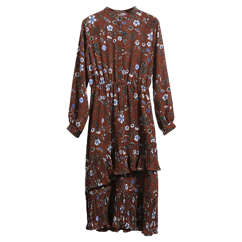 / 春夏雪紡波浪拼接長款連衣裙女裝碎花寬松長袖打底沙灘裙
