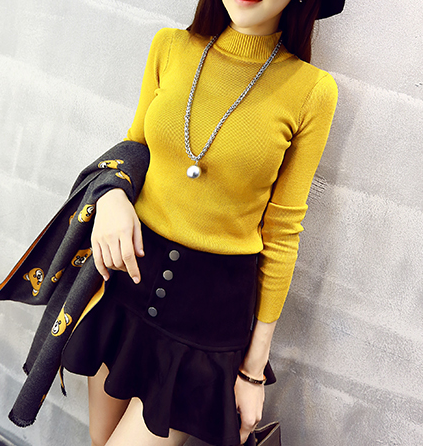 秋裝新款女裝韓版半高領毛衣加厚修身顯瘦長袖套頭針織衫上衣