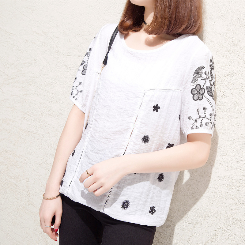 / 短袖t恤女心機上衣服寬松名族風刺繡bf風黑色體恤女夏裝新款