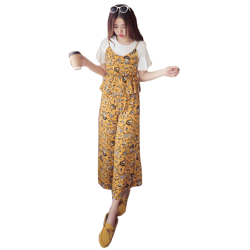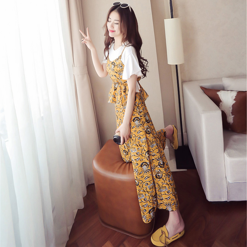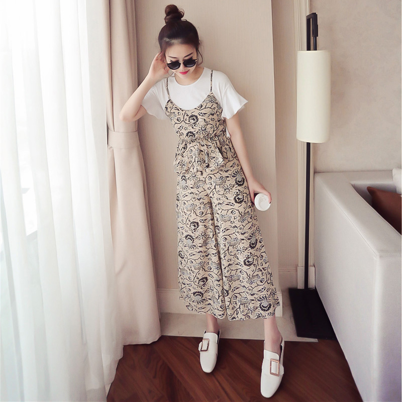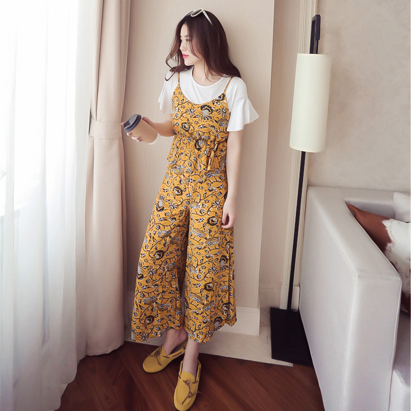 / 女裝春夏新款韓版小香風吊帶雪紡上衣三件套裝女闊腿褲學生兩件套