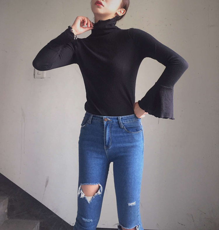 / 秋冬新款修身顯瘦女裝T恤上衣韓版百搭喇叭長袖套頭打底衫女