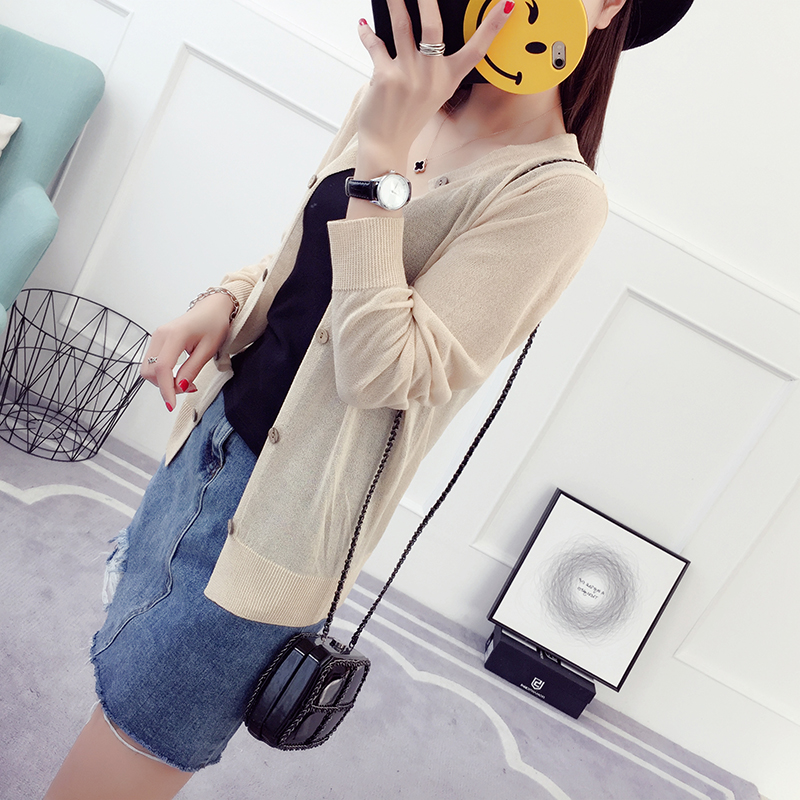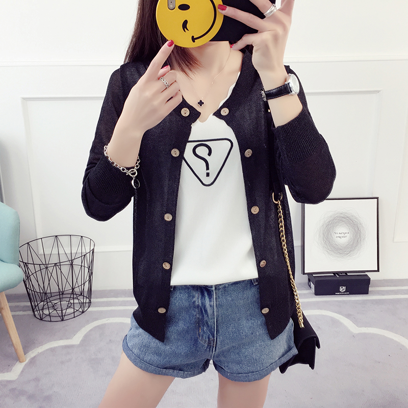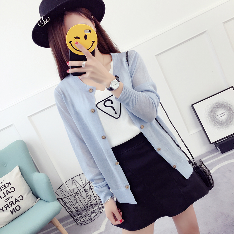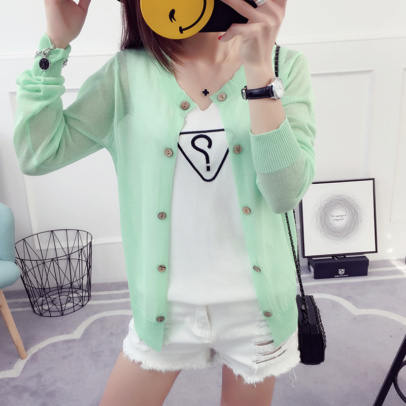 冰絲針織衫長袖薄款外搭女春秋新款防曬開衫女夏季韓版薄外套