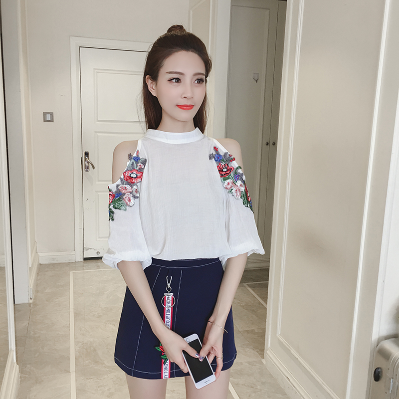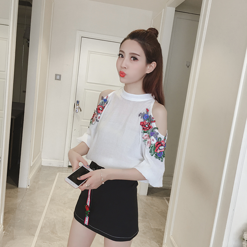 / 春夏新款女裝韓版時尚露肩雪紡衫兩件套女高腰半身短裙休閑套裝潮