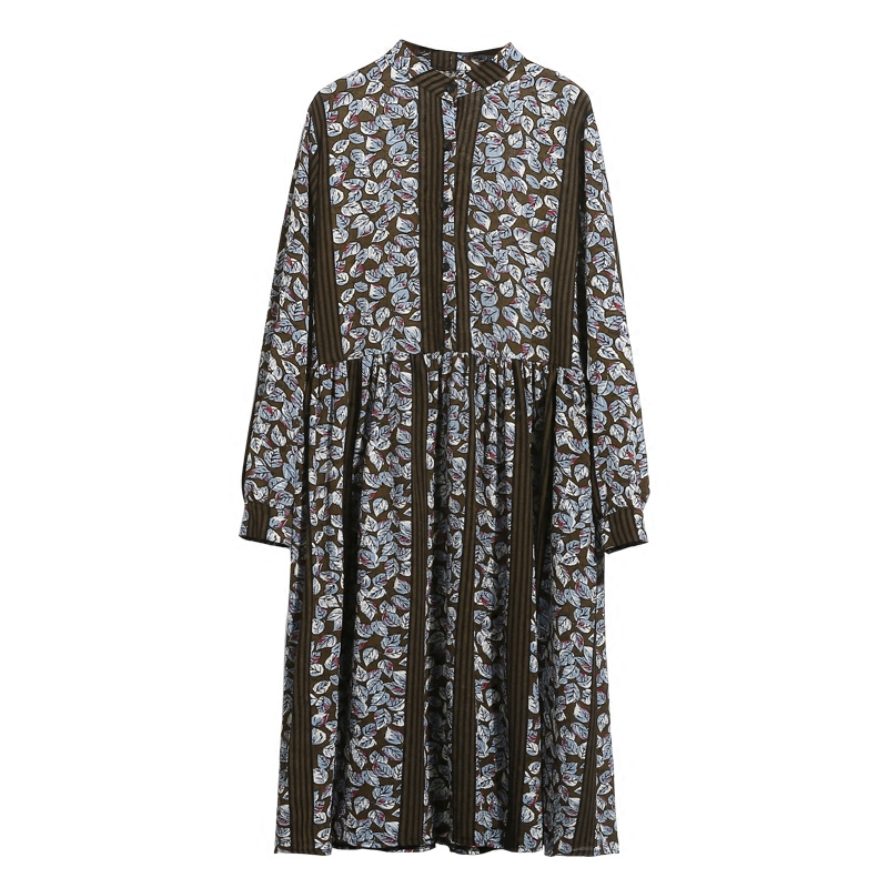 / 春裝韓國碎花高腰雪紡長袖碎花連衣裙寬松中長款百褶裙女打底裙