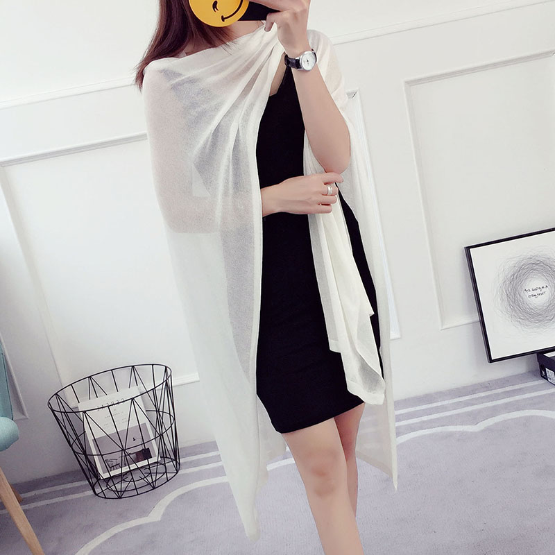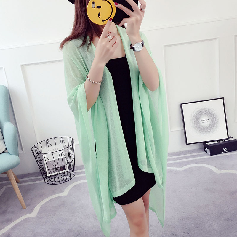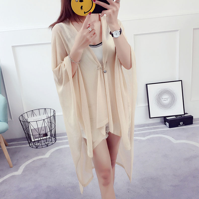 / 冰絲針織衫披肩外套女春秋韓版百搭中長款夏季薄款外搭防曬衣開衫