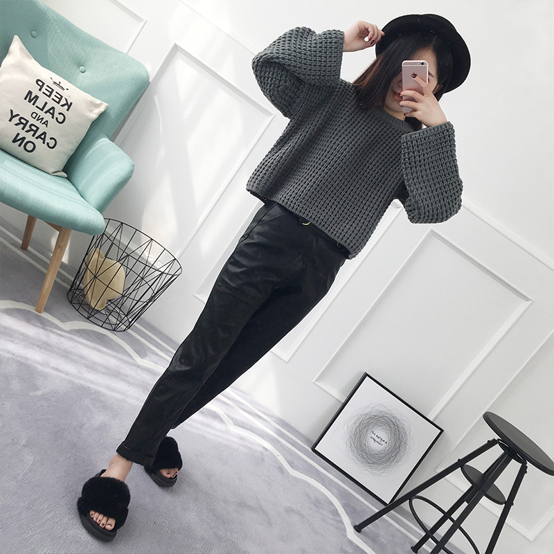 / 套頭毛衣女秋冬韓版短款寬松粗毛線純色針織衫外套女裝新款潮