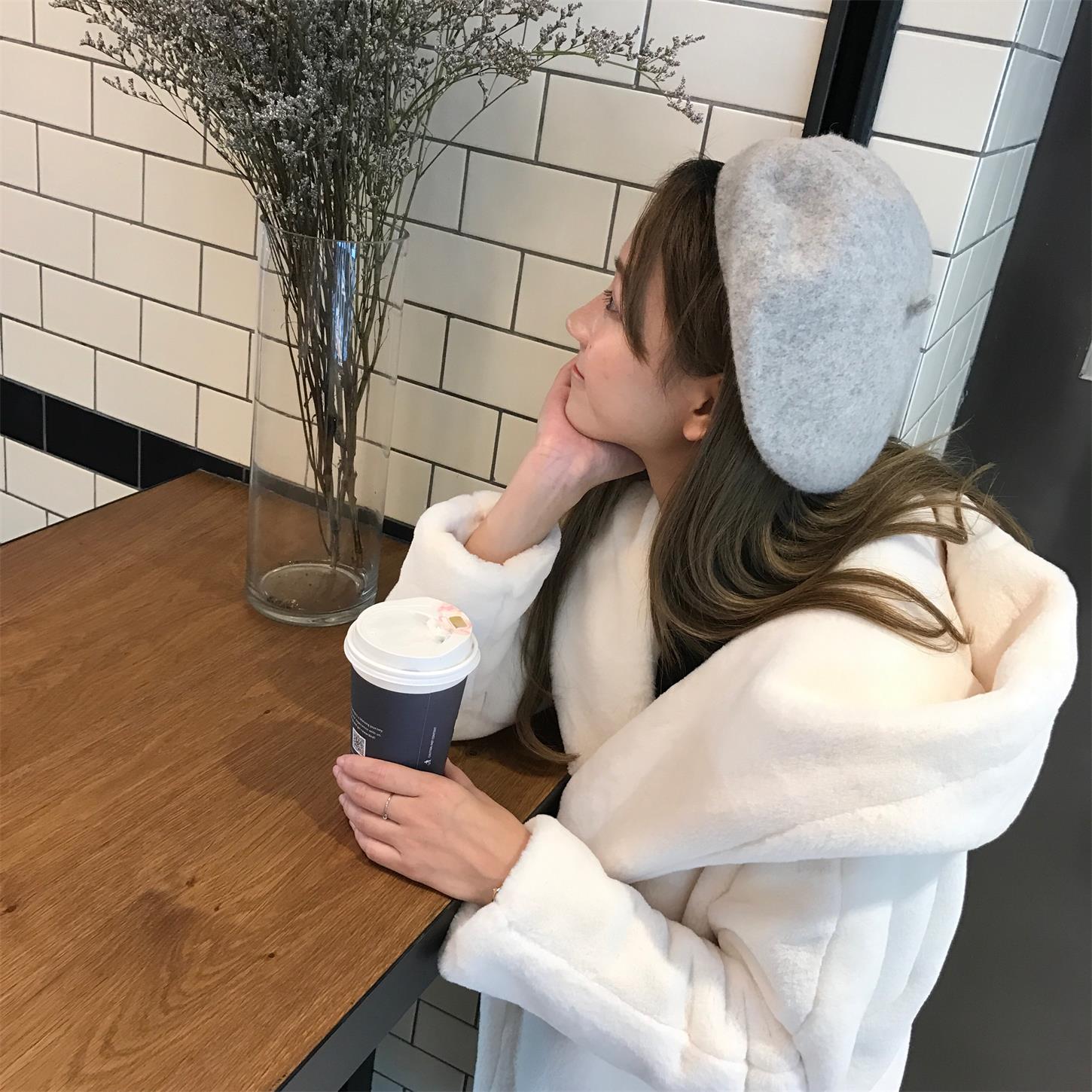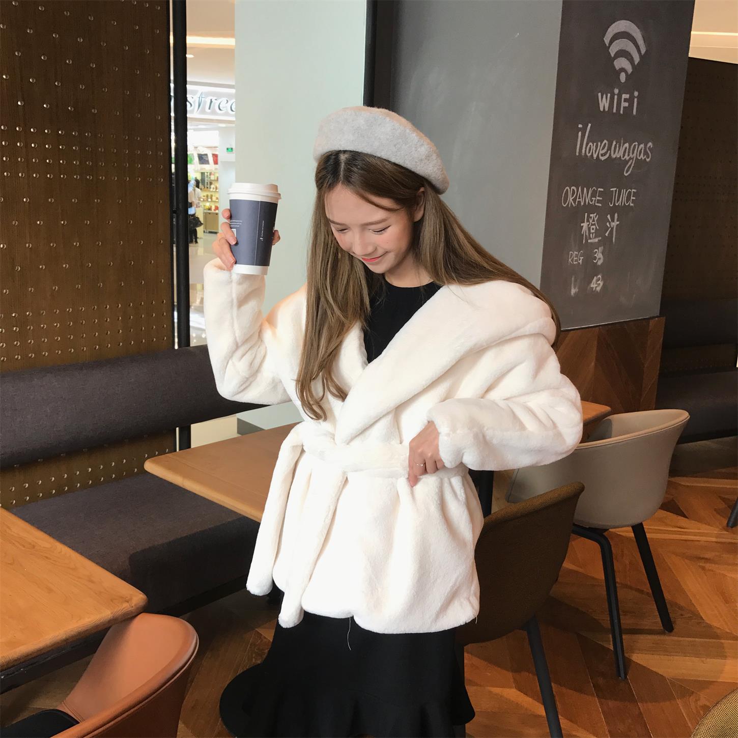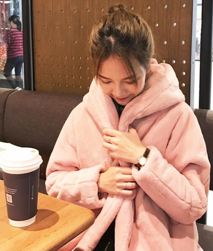 / 韓國甜美學院風冬款保暖加厚中長款寬松毛毛仿皮草連帽外套女