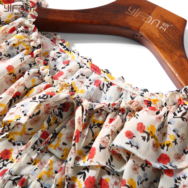 / 春夏韓版百搭氣質碎花系帶娃娃衫喇叭袖雪紡上衣女荷葉邊長袖