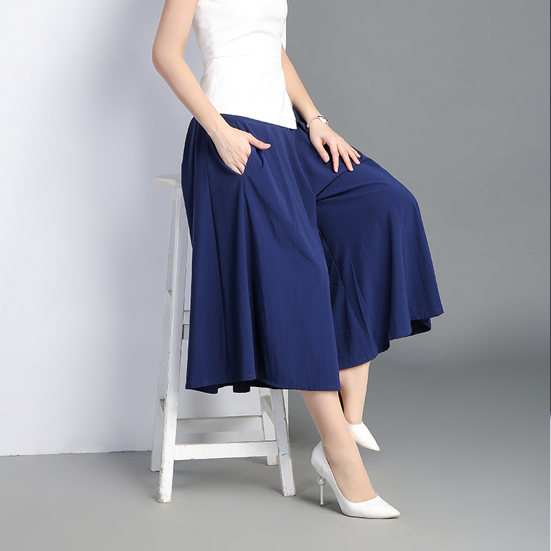 / 雪紡闊腿褲女九分褲高腰裙褲寬腿褲夏新款甩腿褲大腳褲裙休閑褲子