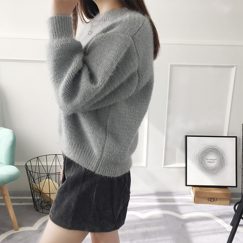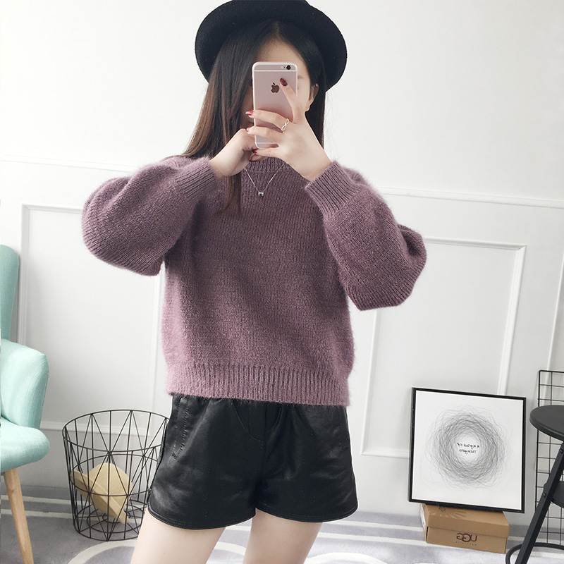 套頭毛衣女秋冬韓版短款寬松圓領純色針織衫新款學生外套女裝