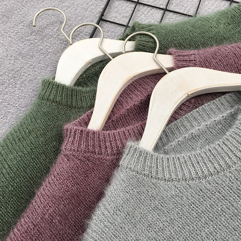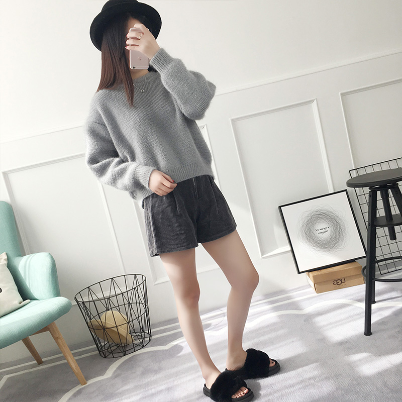 / 套頭毛衣女秋冬韓版短款寬松圓領純色針織衫新款學生外套女裝
