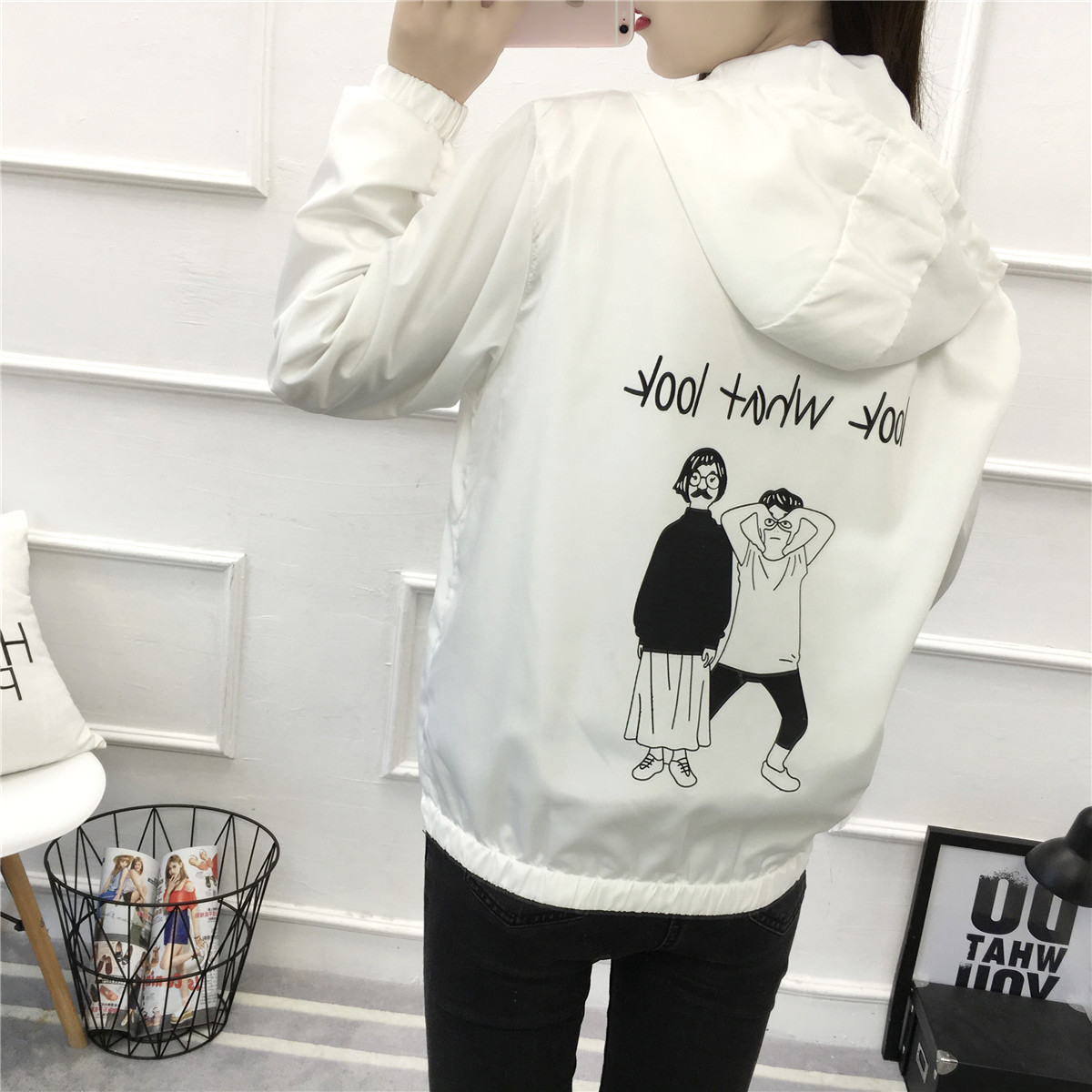 / 韓版學院風百搭拼色棒球服潮春秋裝學生連帽寬松原宿bf短款外套女