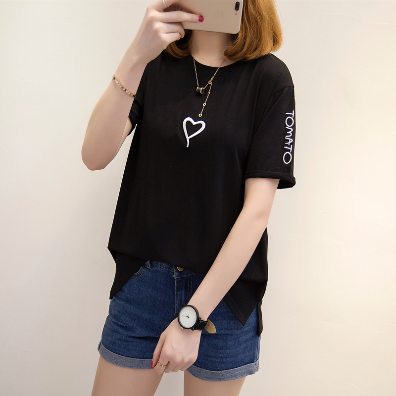 夏裝新款女裝上衣寬松白色t恤女短袖刺繡韓版簡約體恤衫百搭