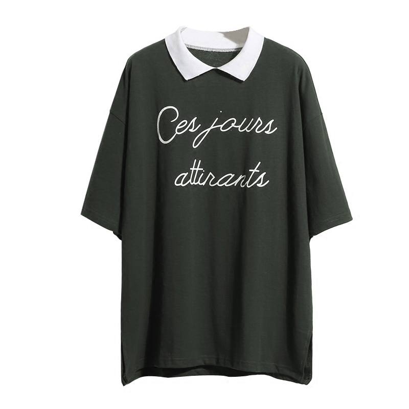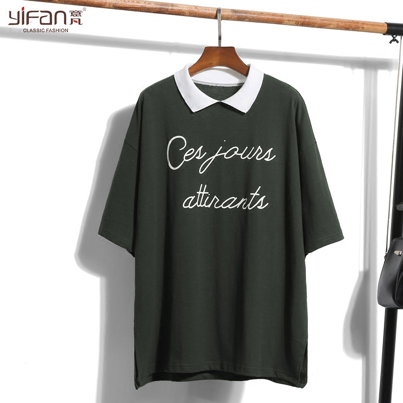 / 純色韓版寬松POLO領五分袖T恤女裝新款大碼百搭翻領套頭體恤