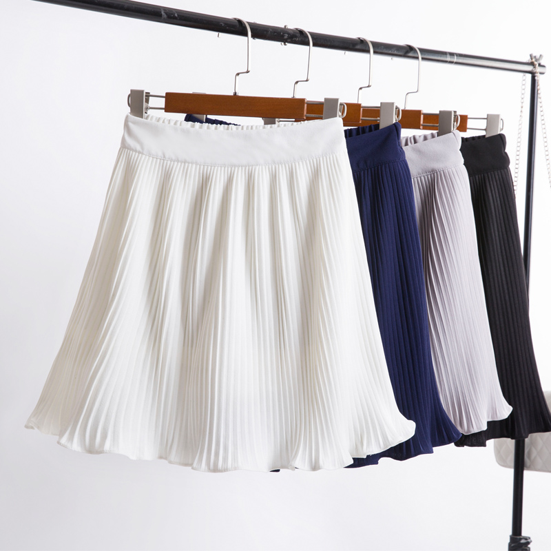 / 中長款百褶裙春秋新款a字短裙夏高腰韓版女百搭雪紡半身裙子