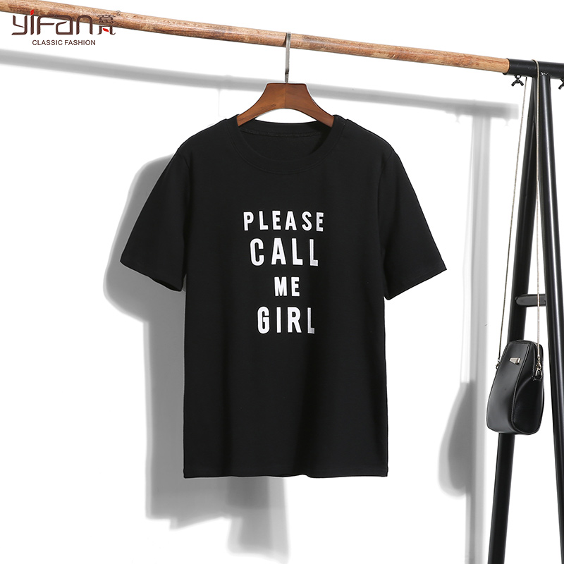/ 夏季簡約字母印花短袖T恤女裝韓版新款寬松套頭純色女裝上衣