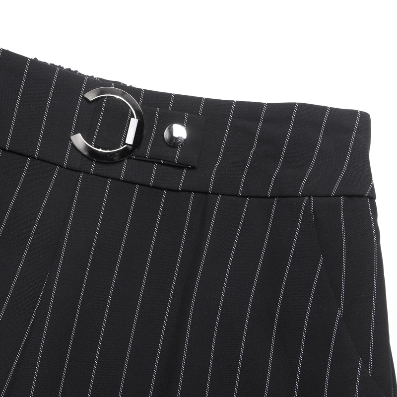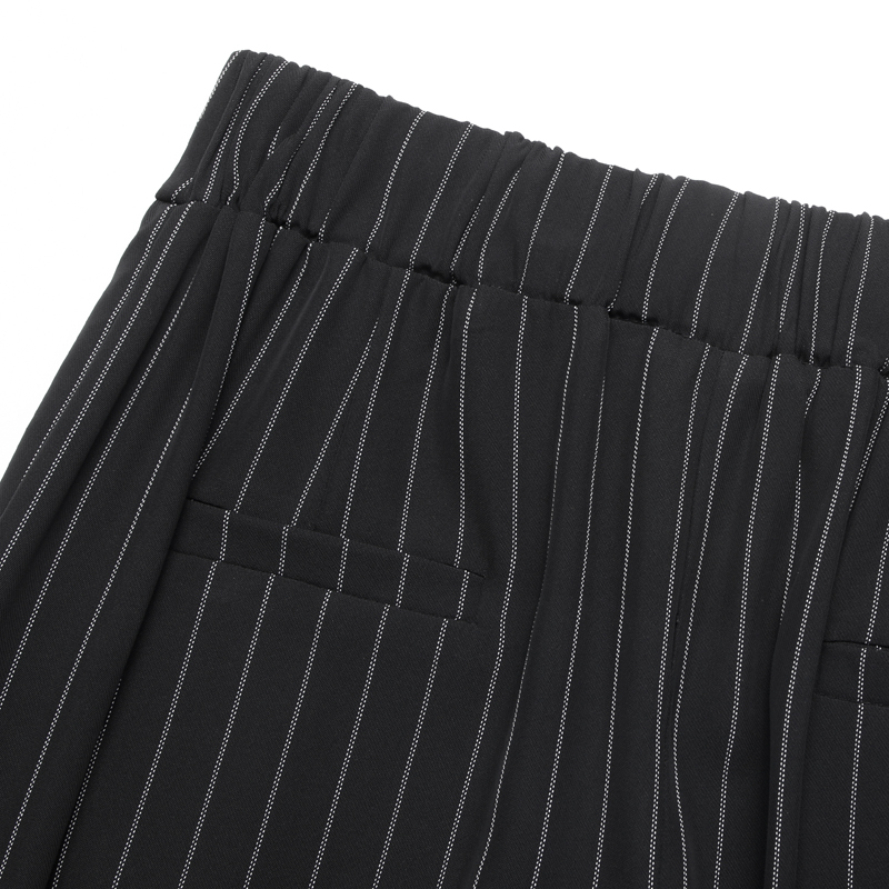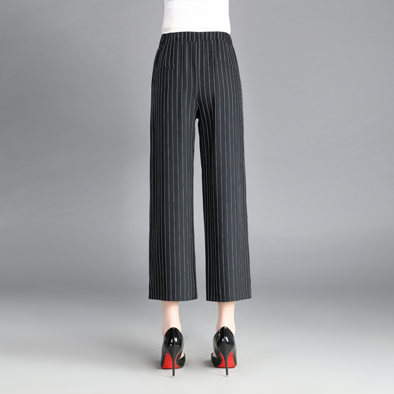 / 條紋闊腿褲女夏季新款女褲子寬松大碼直筒高腰寬腿休閑九分褲