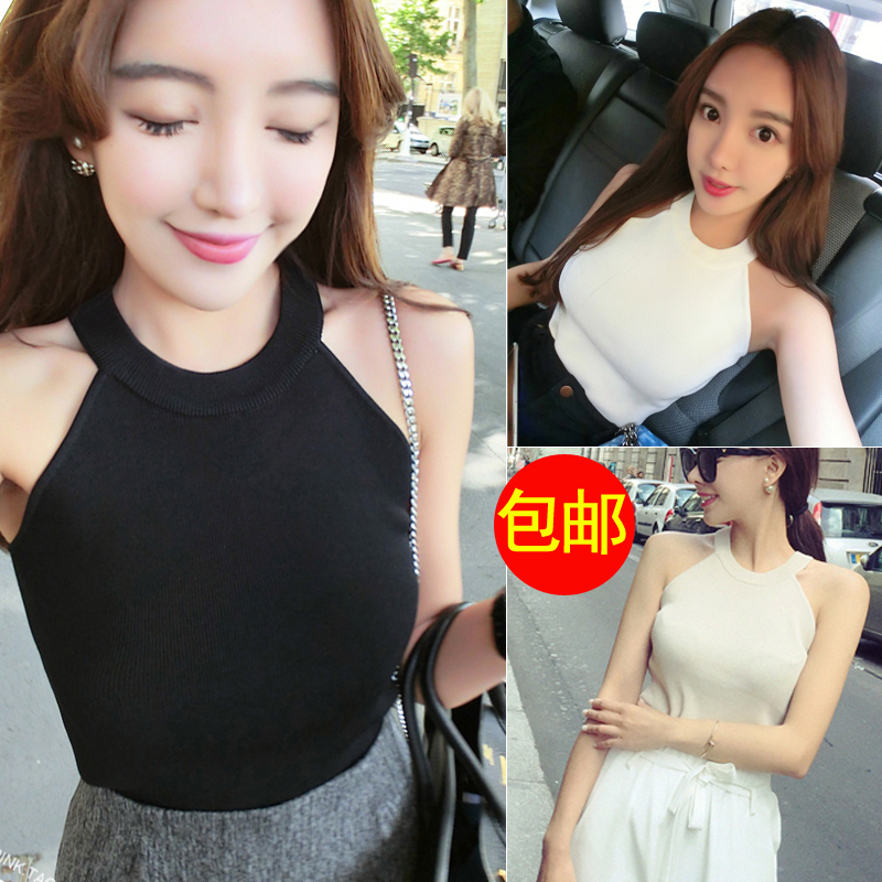 / 春夏韓版新品修身百搭露肩掛脖無袖短款上衣針織衫背心吊帶女
