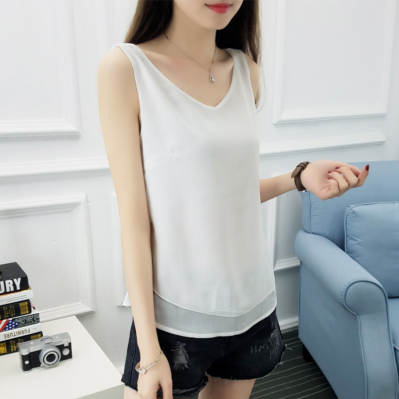 / 吊帶背心女夏季新款短款雪紡無袖t恤寬松學生百搭打底上衣吊帶衫