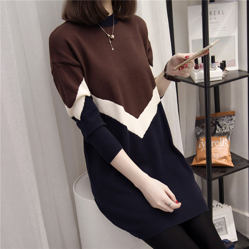 / 套頭毛衣女秋冬中長款寬松針織衫打底衫連衣裙冬裝女裝新款潮