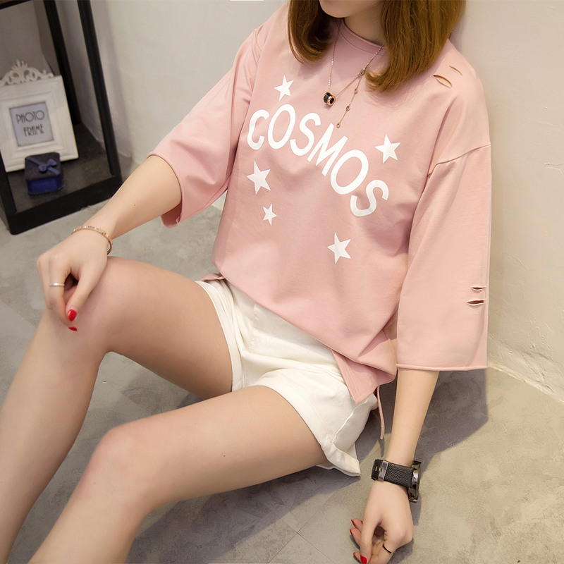 / 女裝春裝新款潮打底衫女短袖t恤女夏寬松上衣女體恤韓版學生