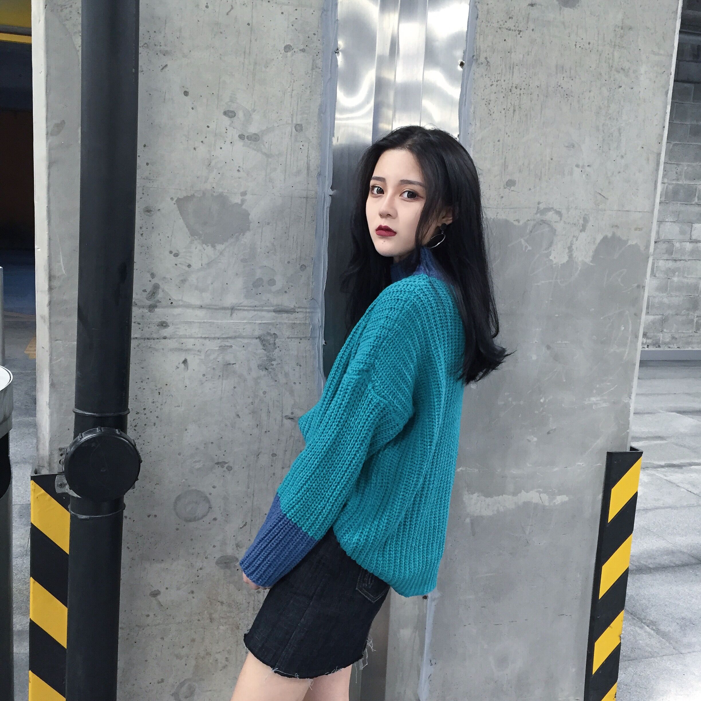 / 冬款韓國chic半高領套頭撞色百搭寬松長袖上衣針織毛衣女