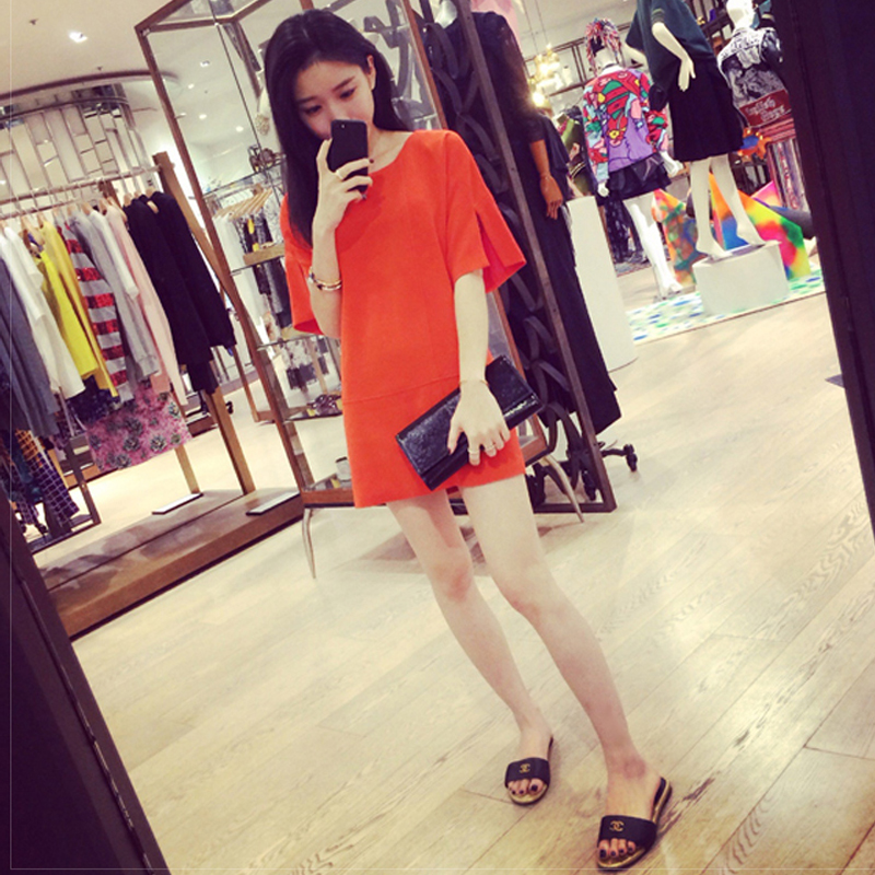 桔紅色 袖口開叉連衣裙