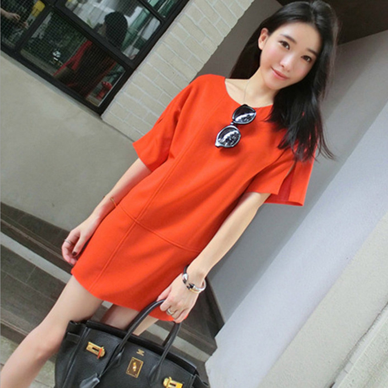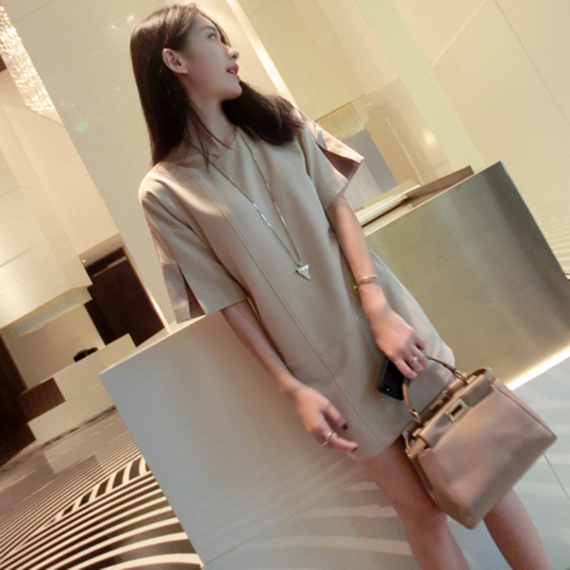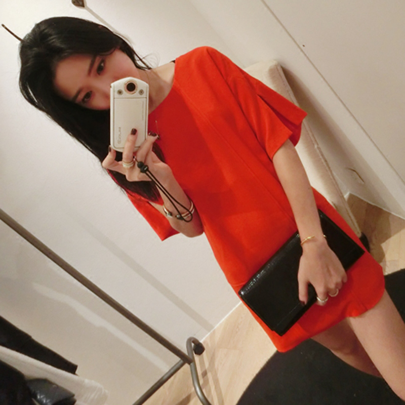 春夏新款女裝潮韓版顯瘦中裙子夏季短袖直筒連衣裙修身A字裙