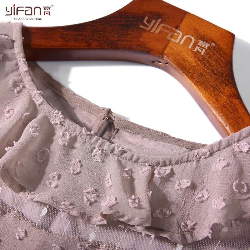 / 夏季新款韓范百搭七分袖荷葉領雪紡衫蝙蝠袖拼接網紗襯衫女