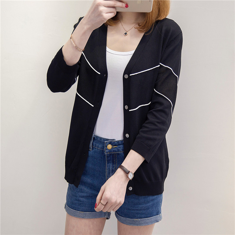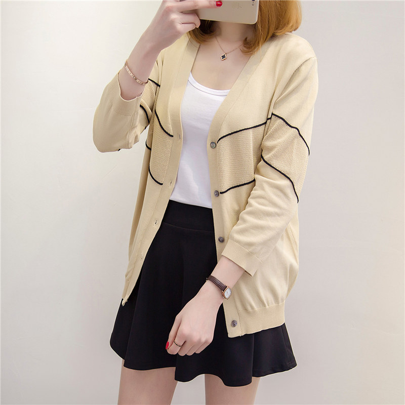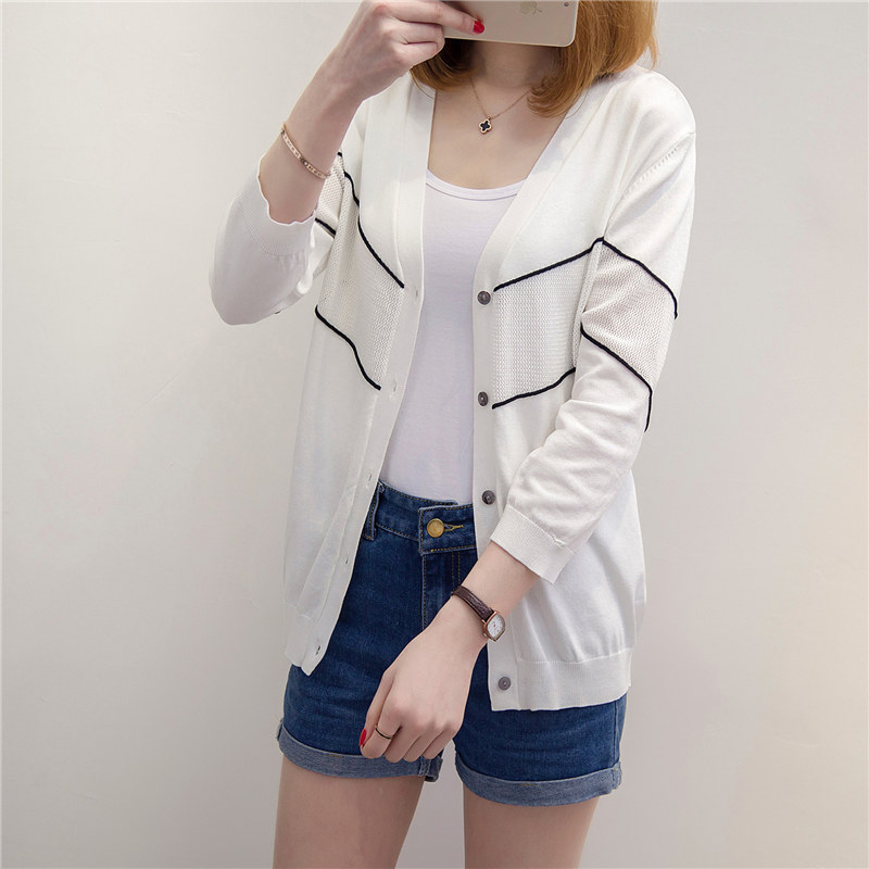 / 女裝春裝新款潮條紋針織衫女開衫寬松上衣毛衣外套打底空調衫