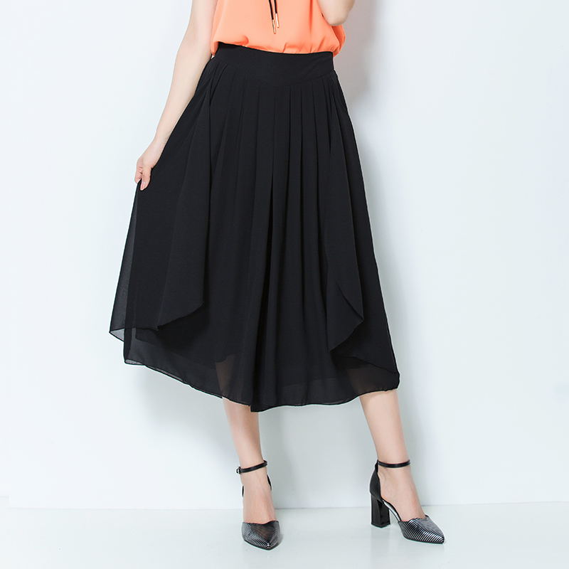 / 雪紡闊腿褲裙褲女七分褲高腰夏季百褶闊腳褲薄款九分寬腿褲子