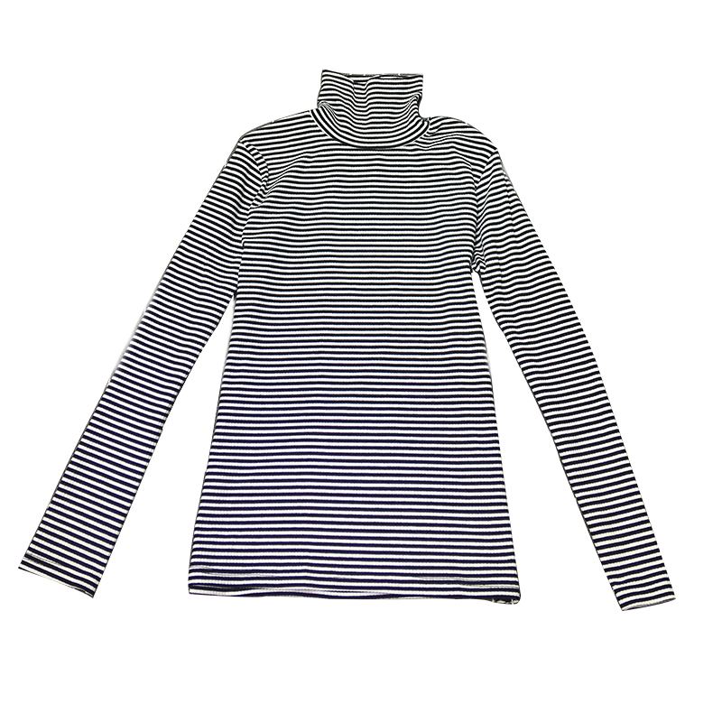 / 韓國chic秋冬套頭高領黑白條紋顯瘦長袖百搭打底衫上衣T恤女