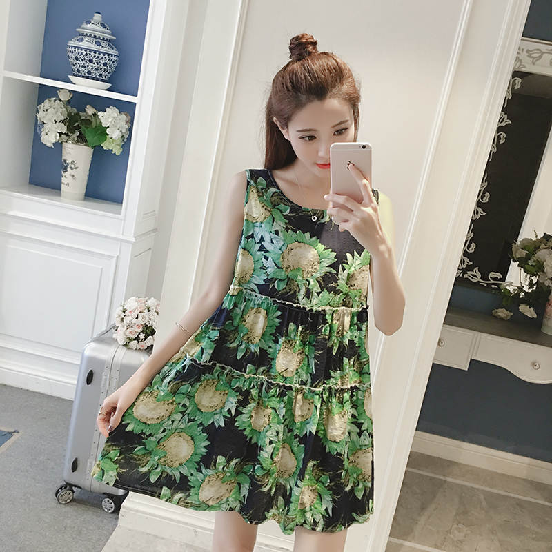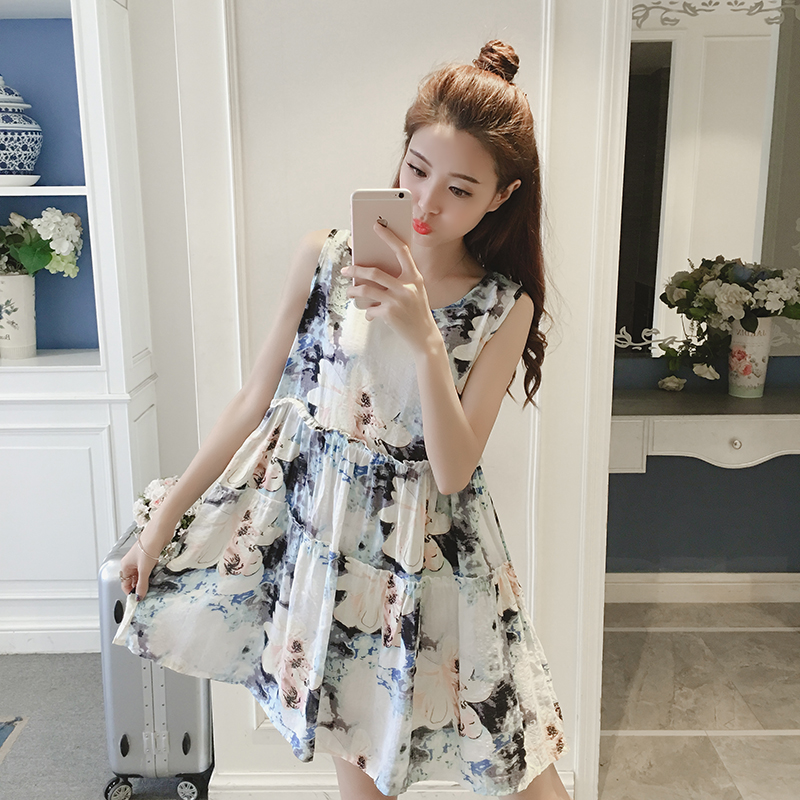 新款女裝復古印花背心裙子女夏季寬松顯瘦碎花無袖棉麻連衣裙